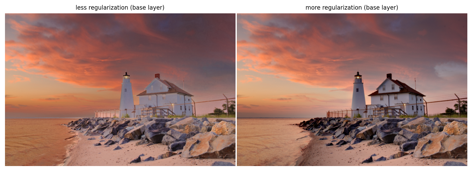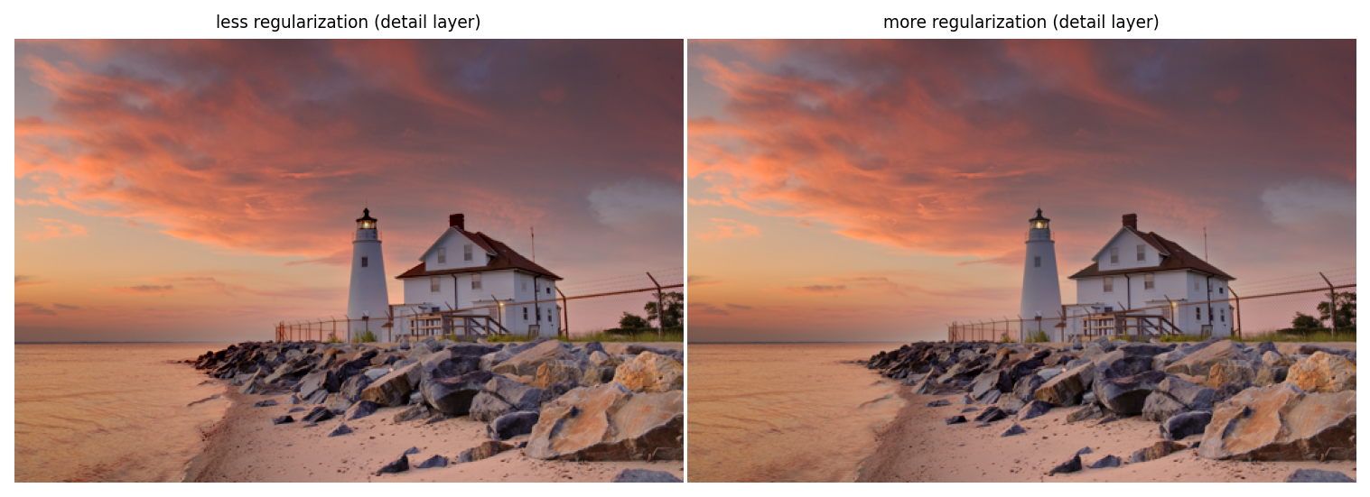 labels=['less regularization (detail layer)', 'more regularization (detail layer)'])